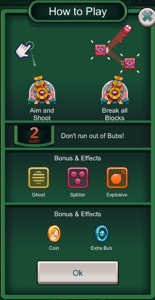 You destroy blocks by throwing balls called Bubs at them from the cannon at the bottom of the screen.